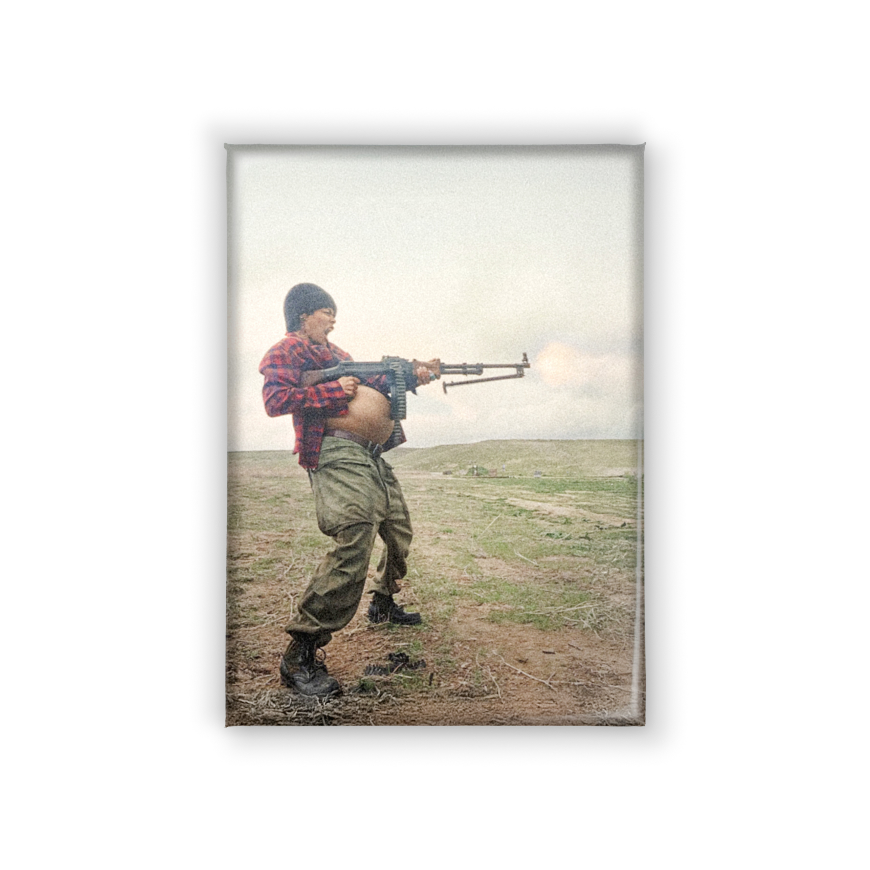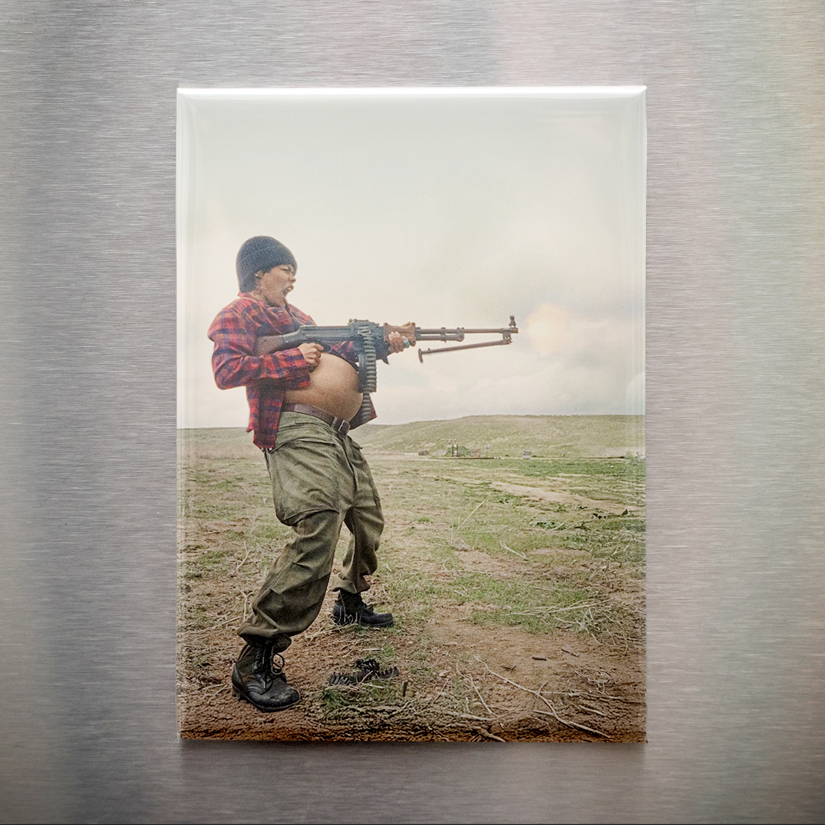 Behold the instantly iconic still from Paul Thomas Anderson’s *One Battle After Another*: a very pregnant Perfidia Beverly Hills finding her focus down the barrel of a machine gun in a desolate field. This audacious, character-defining moment perfectly captures the film’s darkly comedic thesis that rebellion is, truly, a mother, making it a provocative piece of modern cinema for any true cinephile’s collection.