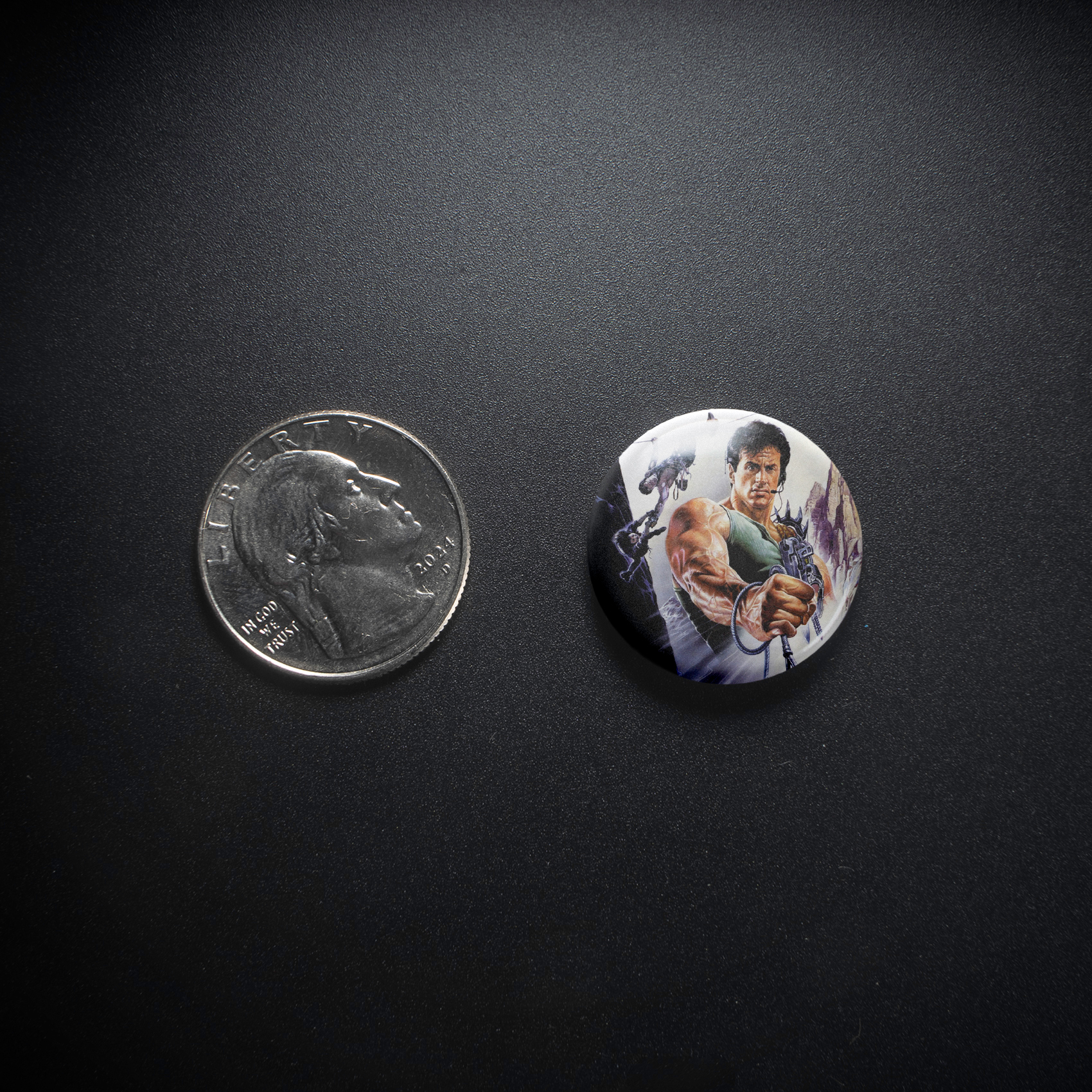 Witness Stallone clinging for dear life, his climbing gear taut against the breathtaking, perilous mountain backdrop of *Cliffhanger*. This 1" pinback button isn’t just a piece of 90s nostalgia; it’s a miniature portal back to that white-knuckle suspense, perfect for action movie buffs, Sly devotees, and anyone who remembers the thrill of this iconic climb.