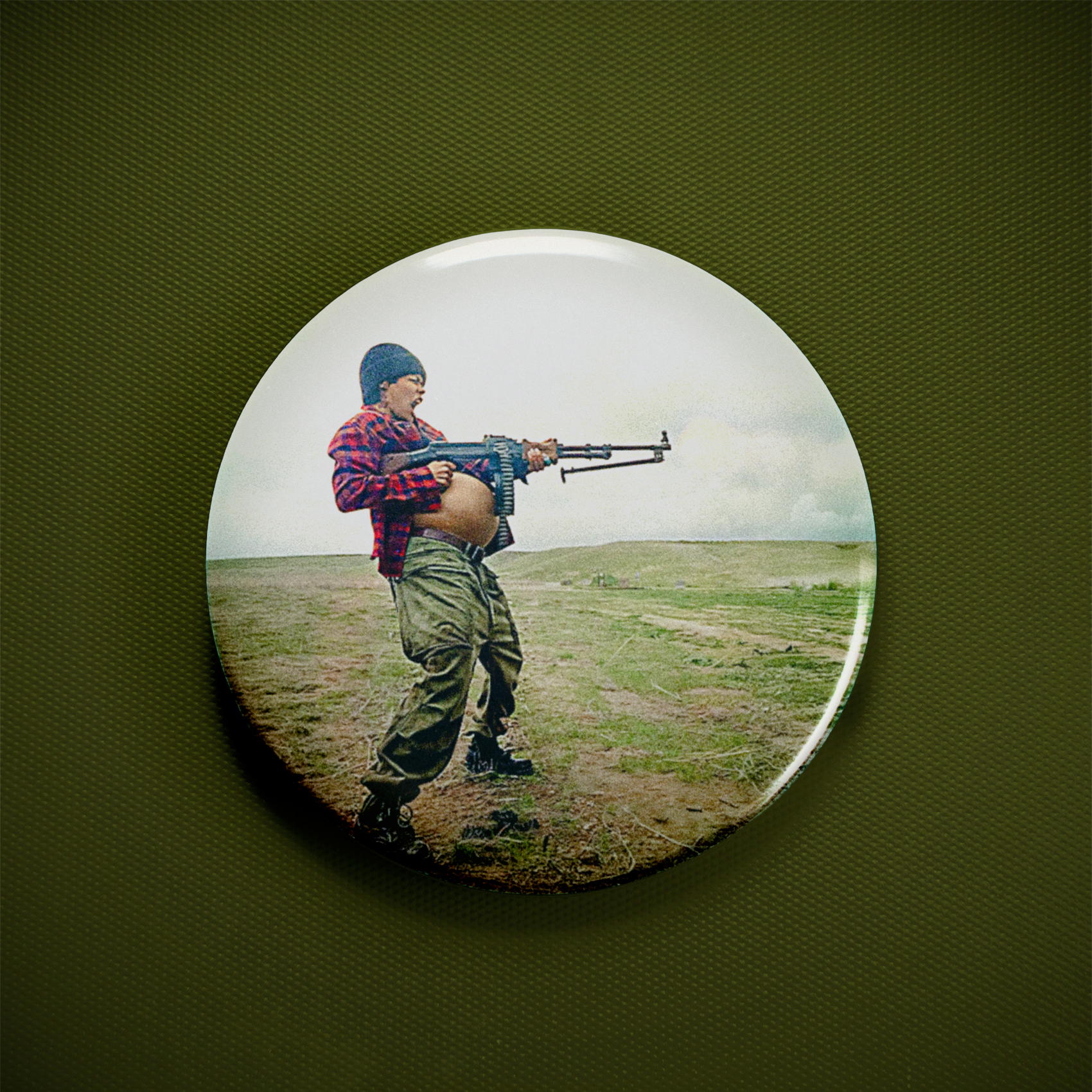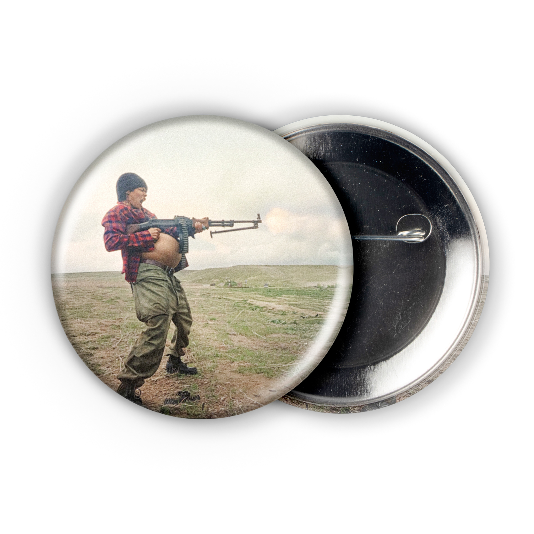 Lock and load with the unforgettable image of a very pregnant Perfidia Beverly Hills, calmly unloading a machine gun across a barren field in Paul Thomas Anderson’s “One Battle After Another.” This is the audacious, darkly funny scene that redefined the action hero for the 2020s, proving that rebellion truly is a mother and making this pin the ultimate badge for fellow PTA disciples.