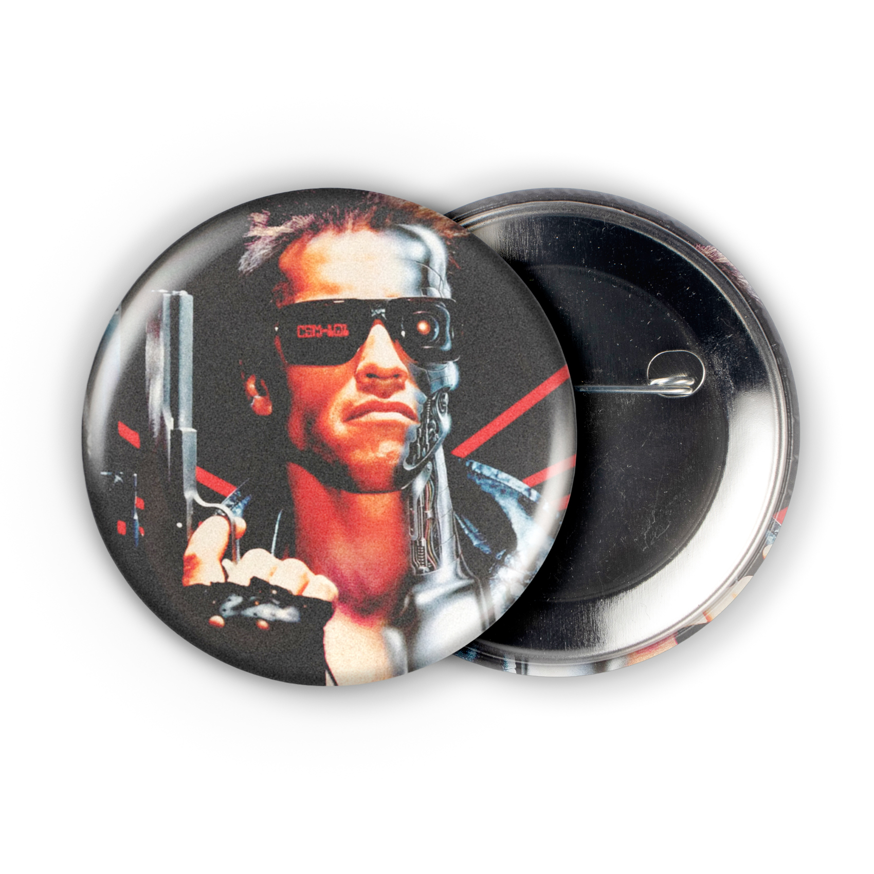 Behind those unmistakable sunglasses, a hint of the cybernetic assassin’s endoskeleton is exposed, a chilling preview of the unstoppable force from the original movie poster. This isn’t just a button; it’s a 2.25-inch piece of 1984’s dystopian future, a declaration of your allegiance to one of the most iconic sci-fi action films ever to hit the screen. He’ll be back… on your jacket, backpack, or collector’s board.