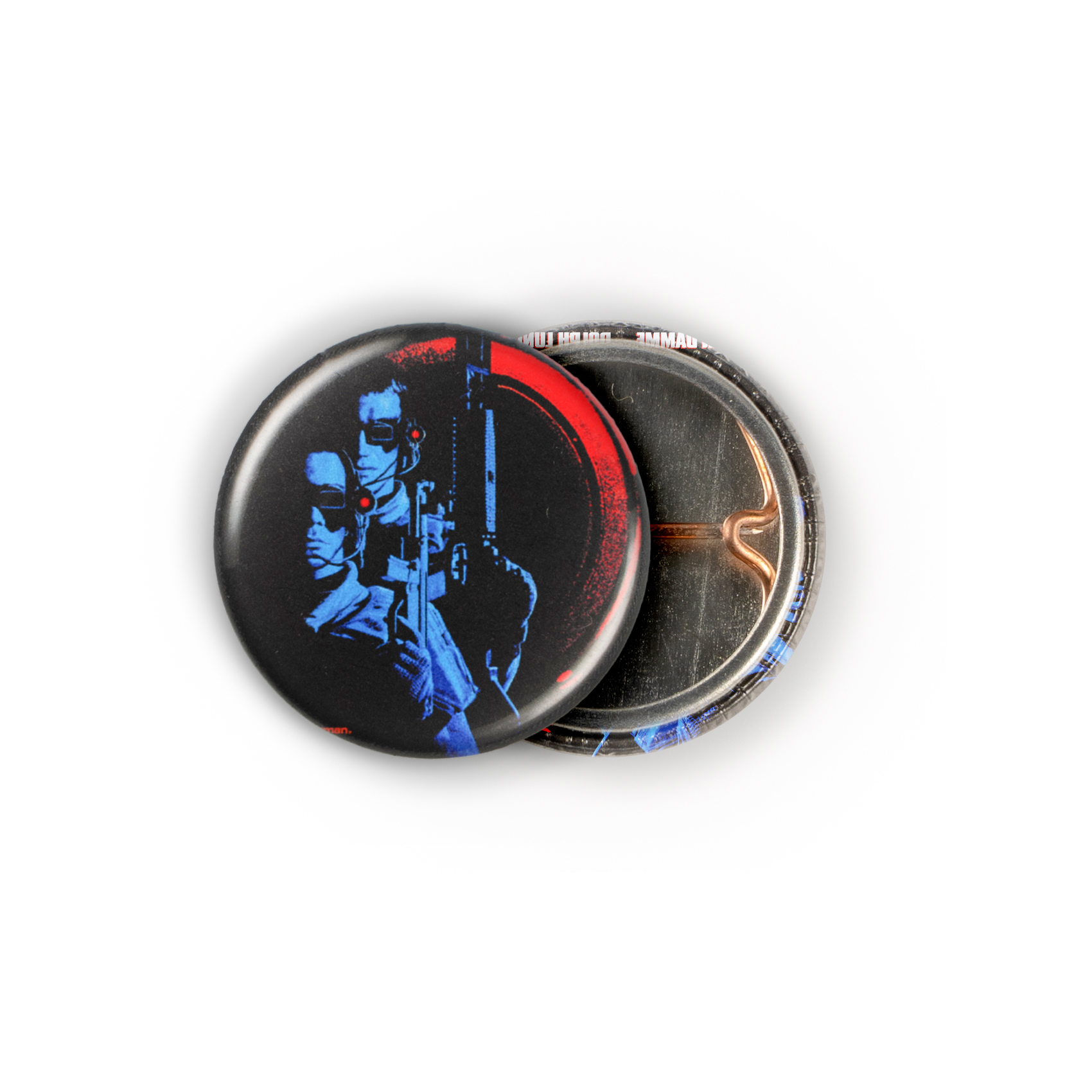 Emerging from the dim, gritty light of a top-secret lab, two cybernetically enhanced soldiers stand poised for a war they were never meant to survive. This pin is a potent, one-inch piece of 90s action history, perfectly capturing the futuristic military might and blurred human-machine lines that made *Universal Soldier* an absolute cult classic. For those who remember the raw power of Van Damme versus Lundgren, this is the ultimate wearable artifact of that iconic showdown.