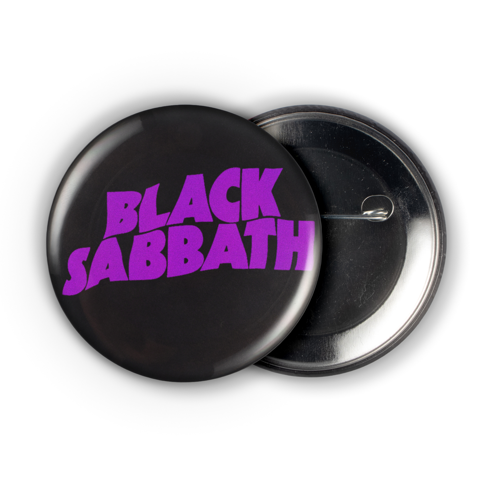 Bathed in distorted purple on a midnight black background, the legendary Black Sabbath logo screams from this 2.25" pinback button, a potent symbol of heavy metal’s unholy trinity. Channel the raw, occult energy of *Master of Reality* and let this iconic piece declare your allegiance to the godfathers of doom, a badge of honor for any true disciple of the 70s metal scene.