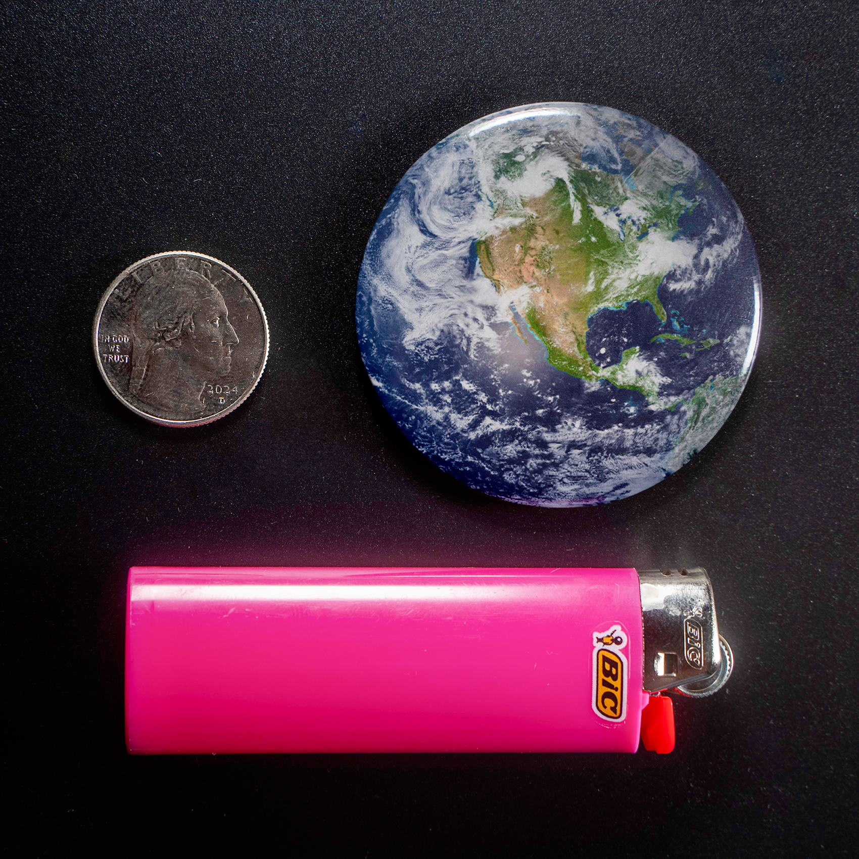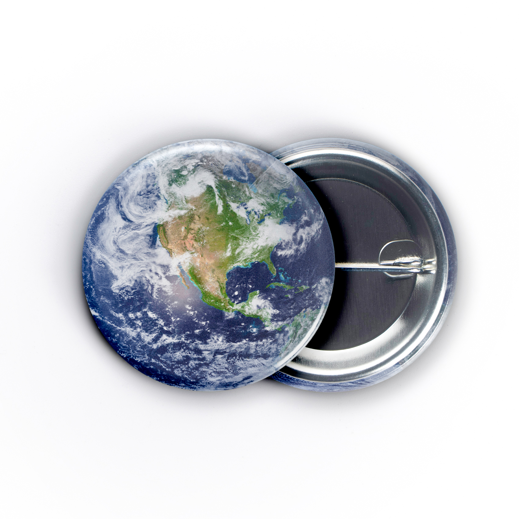 Behold this 1.5-inch button showcasing a stunning, detailed view of Earth from space, with North America taking center stage. This miniature marvel captures the delicate beauty and interconnectedness of our planet, sparking conversations about global citizenship and inspiring wonder in anyone who feels a deep connection to our shared home – perfect for educators, travelers, or anyone with a passion for science, nature, and the vast universe beyond.