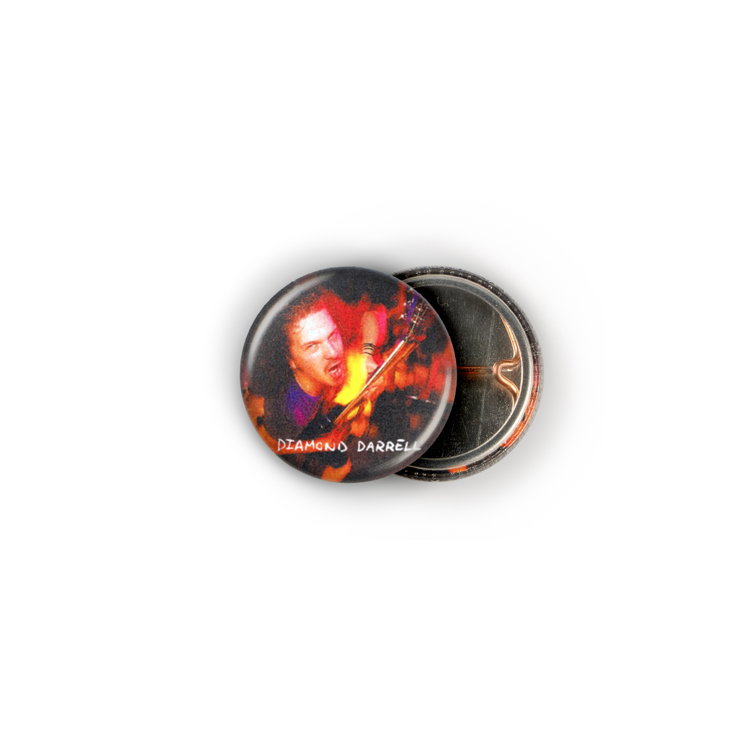 Frozen in mid-shred, Dimebag Darrell unleashes a riff from the depths of Pantera’s iconic 90s groove metal assault on this 1" pinback button. Fuel your own rebellious spirit and let this piece of metal history connect you to the raw power and legendary legacy of a true guitar god – perfect for any passionate headbanger’s jacket, gig bag, or altar to Dime.