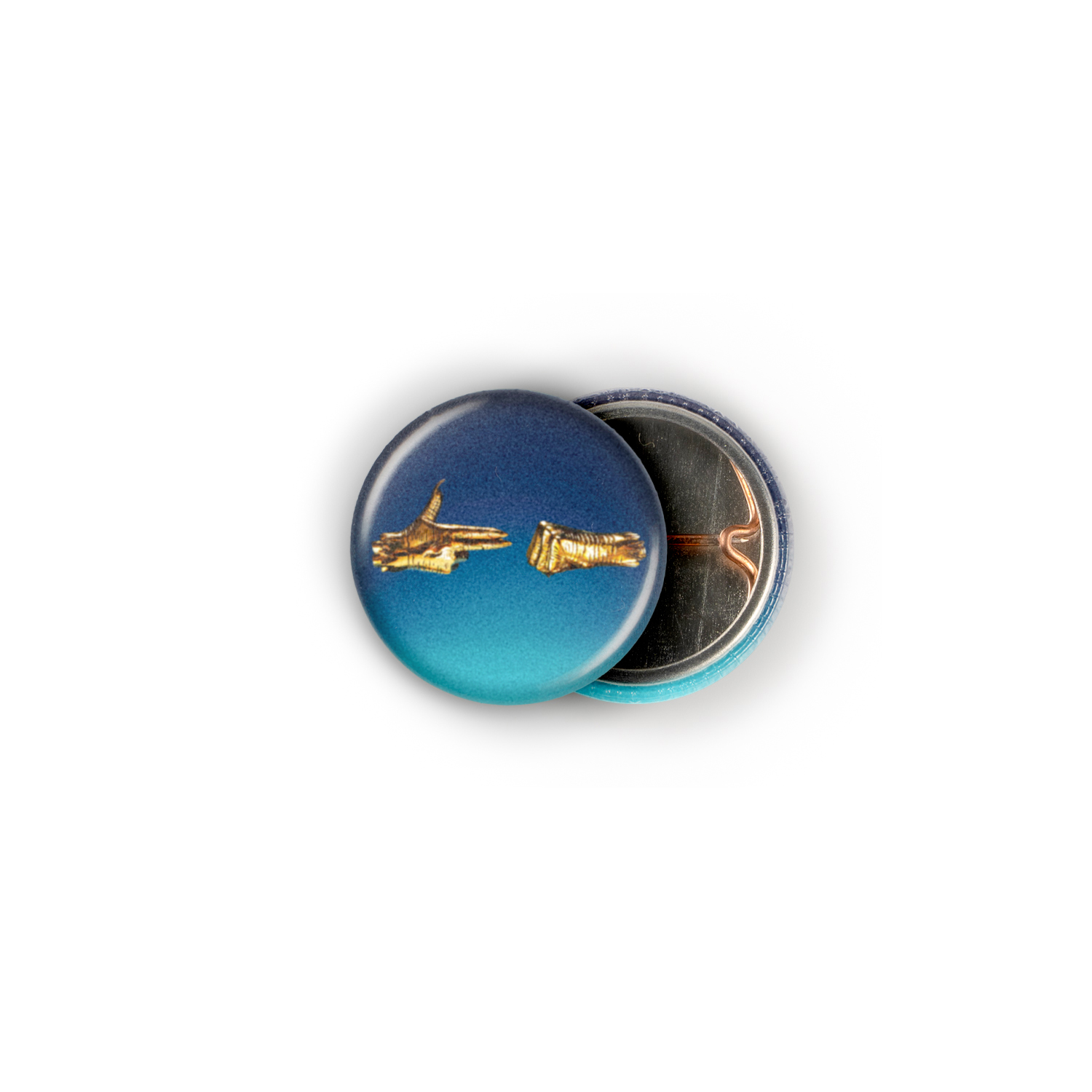 The iconic golden pistol and fist gesture erupts from a slick blue and teal gradient, the unmistakable sigil of El-P and Killer Mike’s reign. More than just merch, this is a one-inch badge of honor representing resistance, a small, golden trophy from the front lines of the fight against the status quo. Pin it on and let them know you run with the jewels.