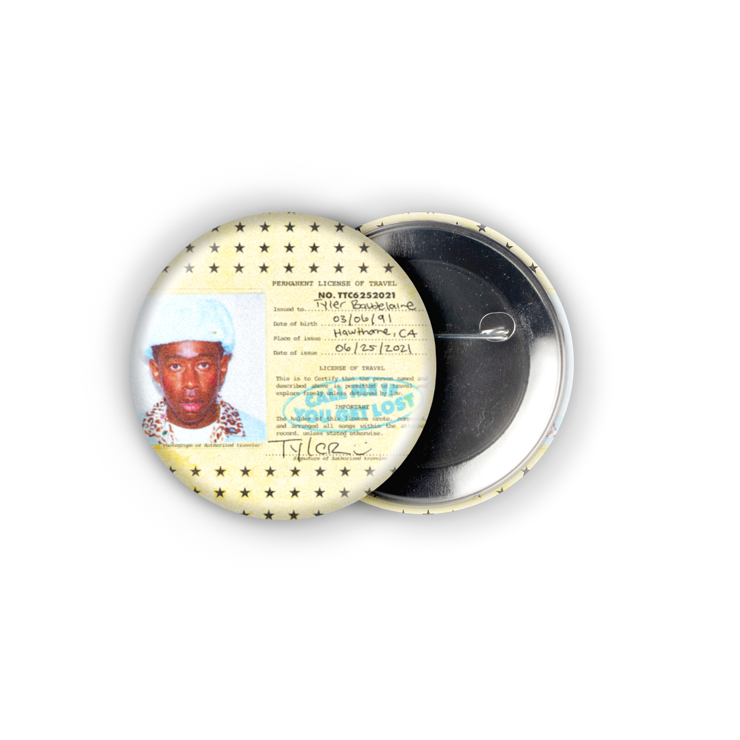 Flash your official credentials for the Baudelaire estate with this pin, perfectly capturing Tyler’s stylized ‘Permanent License of Travel’ from the iconic *Call Me If You Get Lost* era. It’s a subtle badge of honor for your denim jacket or tote bag, celebrating an entire, genre-bending evolution with a dash of rebellious charm and a whole lot of Tyler.