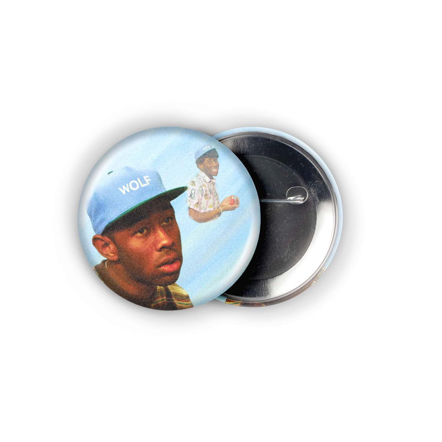 This pin captures a surreal snapshot of Tyler’s universe, layering his iconic blue ‘WOLF’ hat over a dreamlike echo of his GOLF-clad self. It’s a wearable piece of the hazy, sun-drenched adventure that defined the *Wolf* album, a perfect hit of that whimsical nostalgia and coming-of-age melancholy for your favorite jacket or tote.