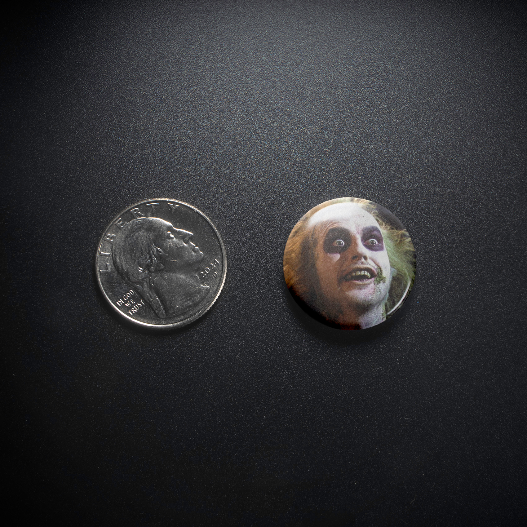 Beetlejuice Wide Eyes 1in Pin | Michael Keaton 80s Horror Comedy