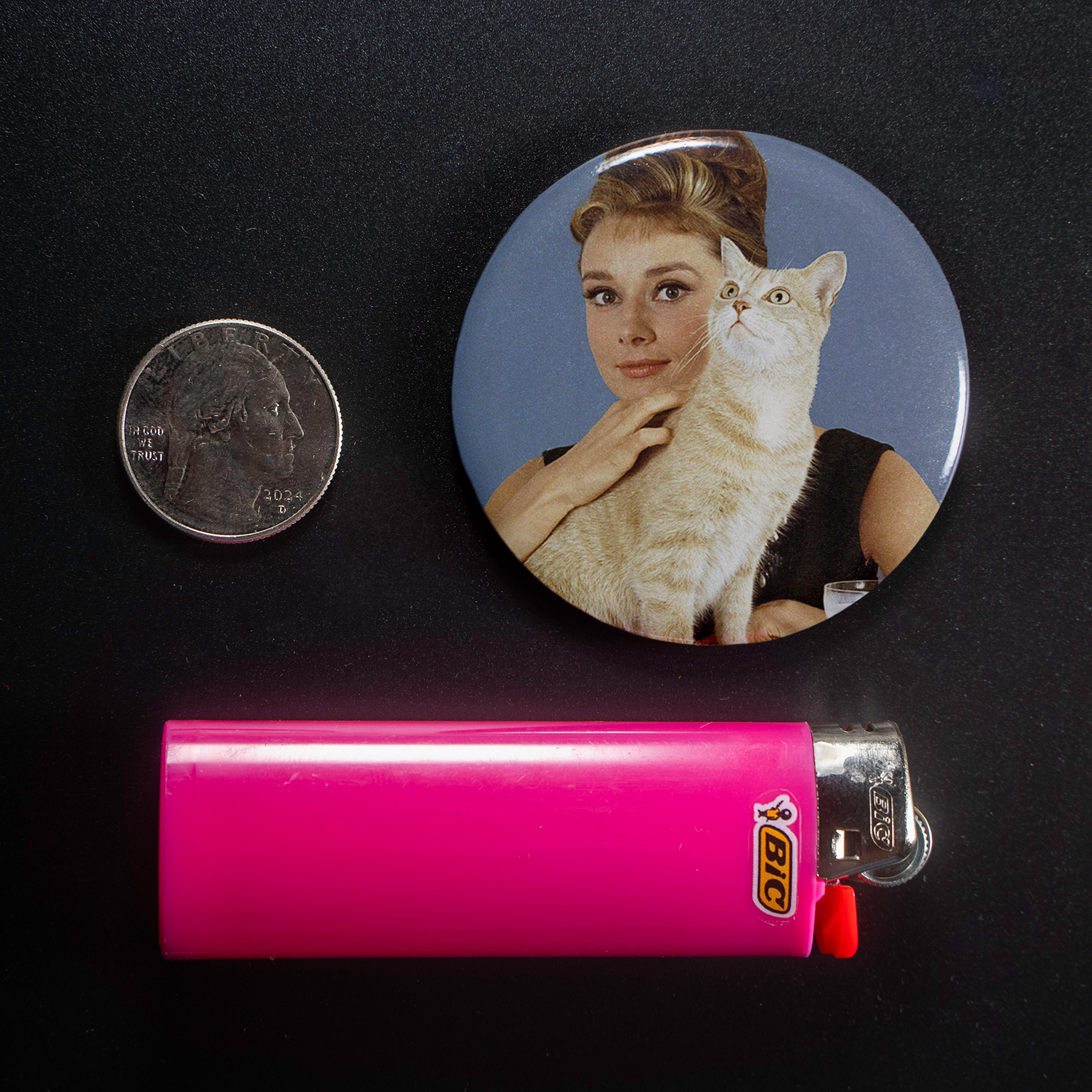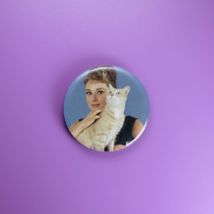 Audrey Hepburn With Cat 1.5in Pin | 50s Hollywood Glamour Portrait