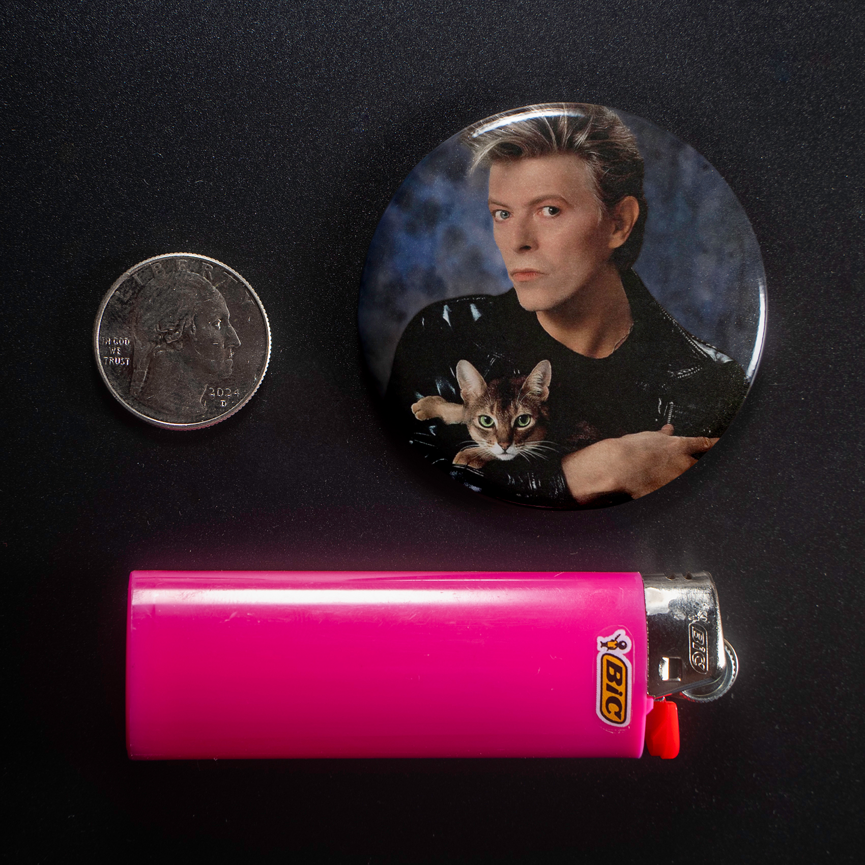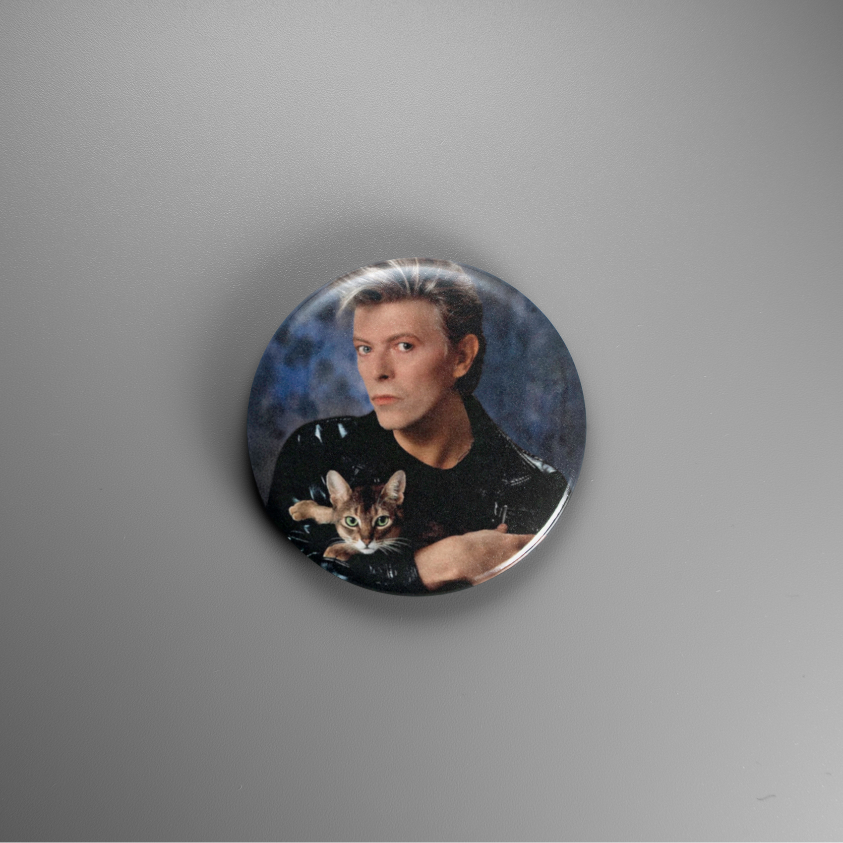 David Bowie With A Kitten 1.5in Pin | 80s Glam Rock Portrait