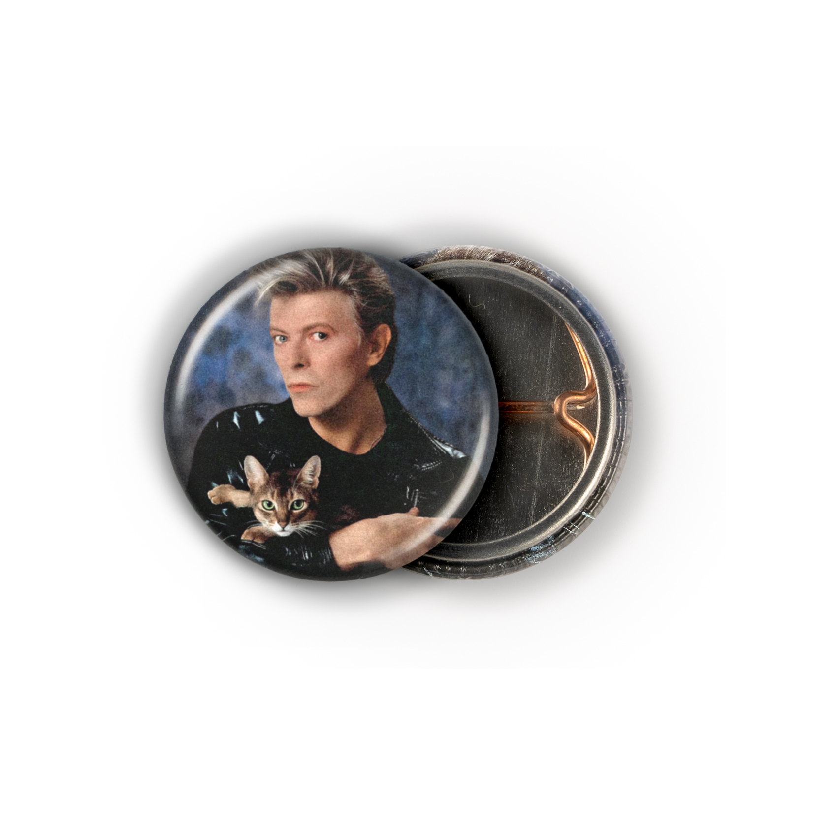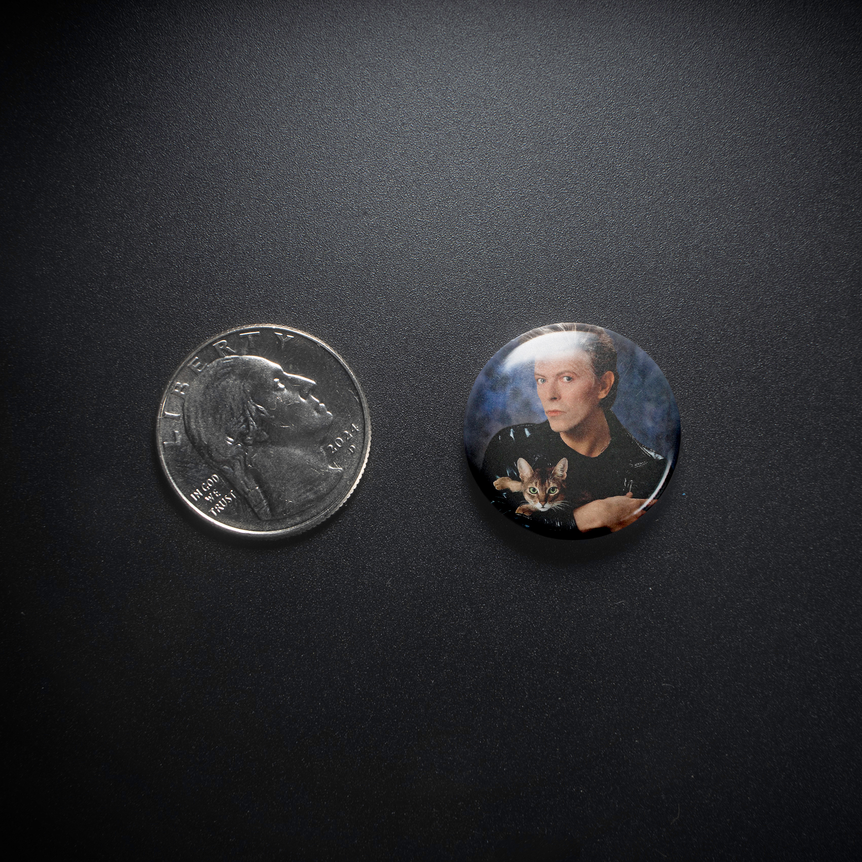 David Bowie With A Kitten 1in Pin | 70s Glam Rock Portrait