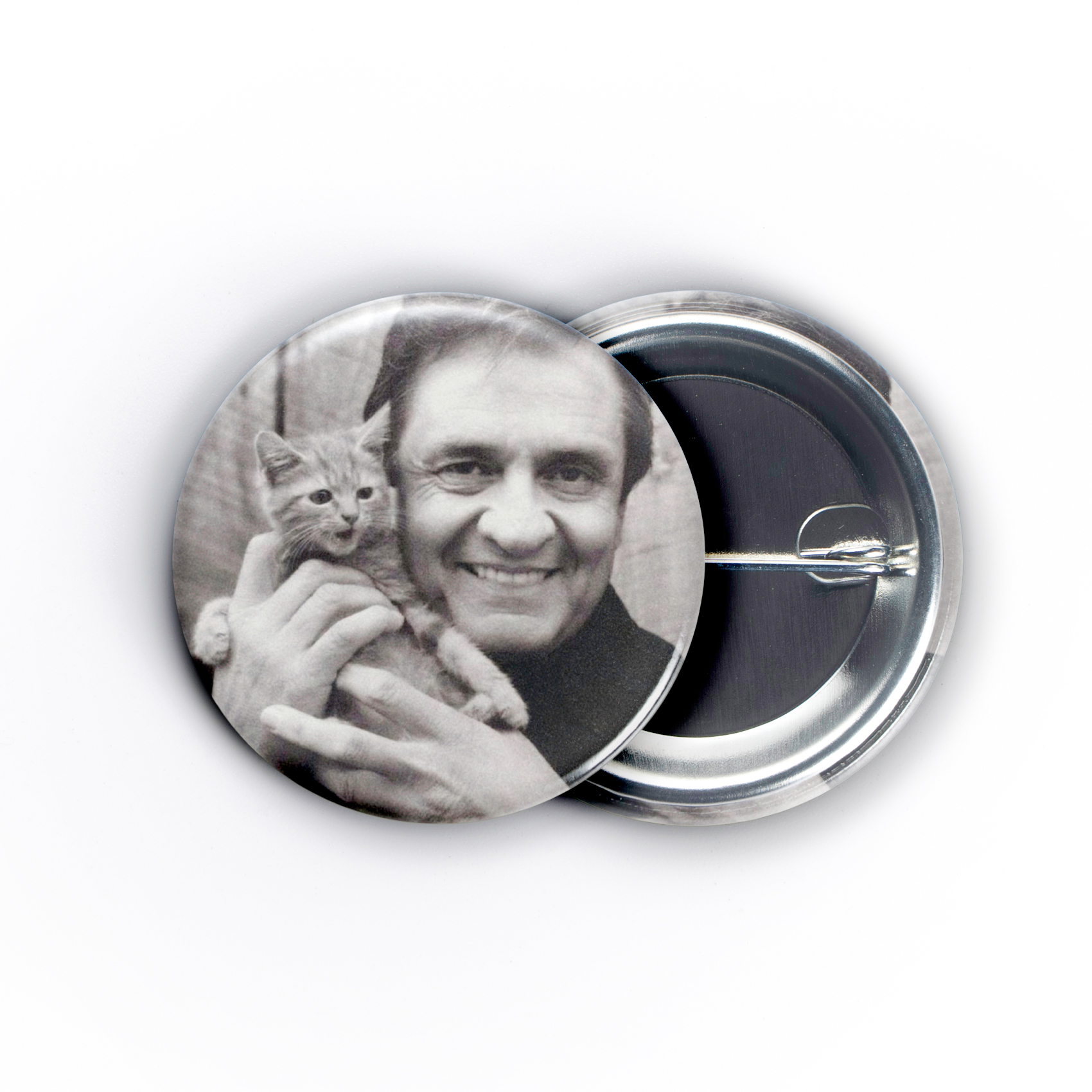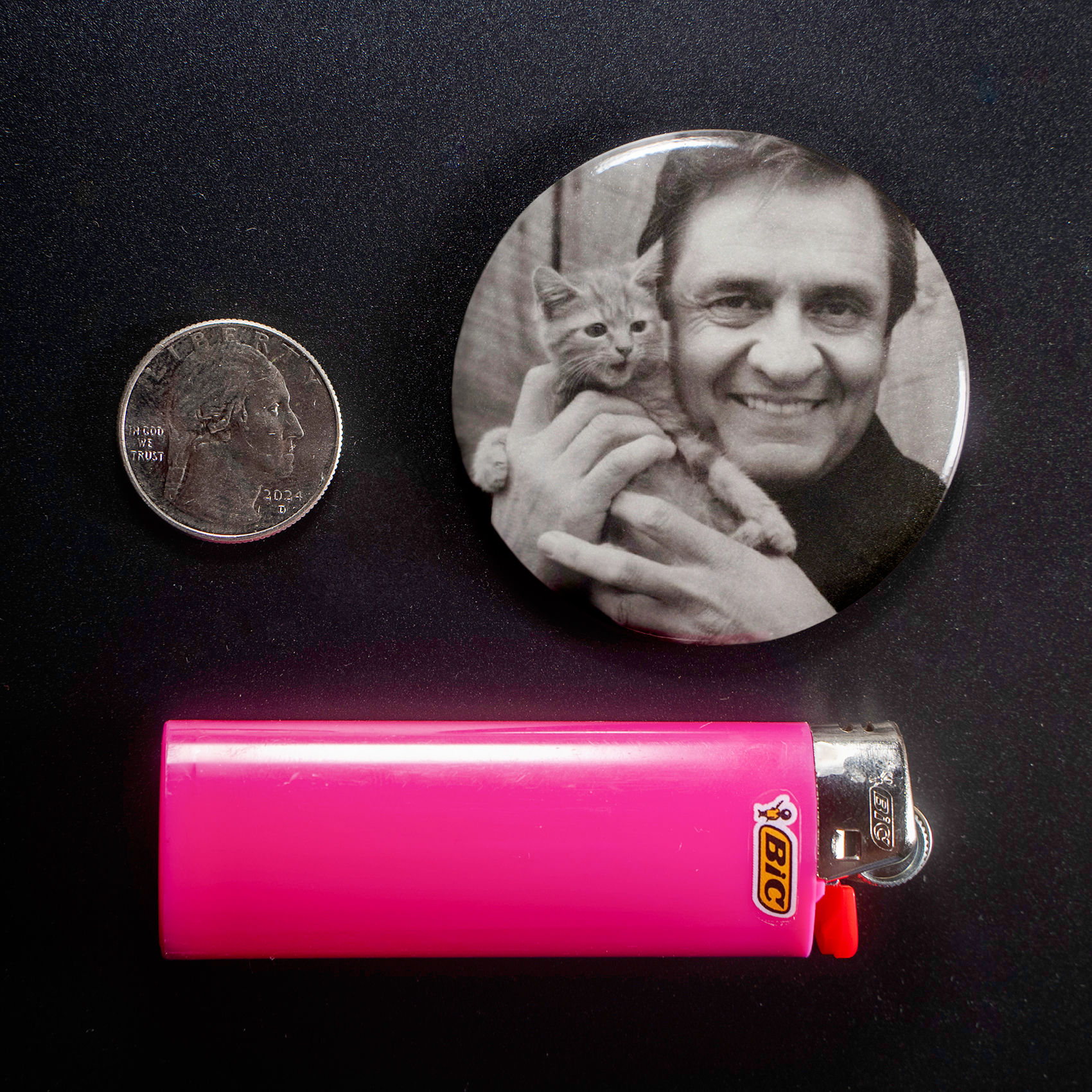 Johnny Cash With A Kitten 1.5in Pin | Tender Country Icon with Cat