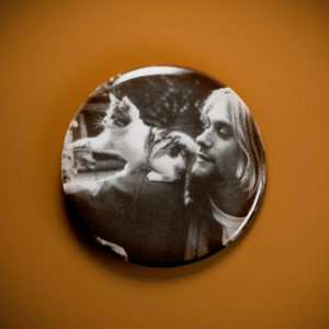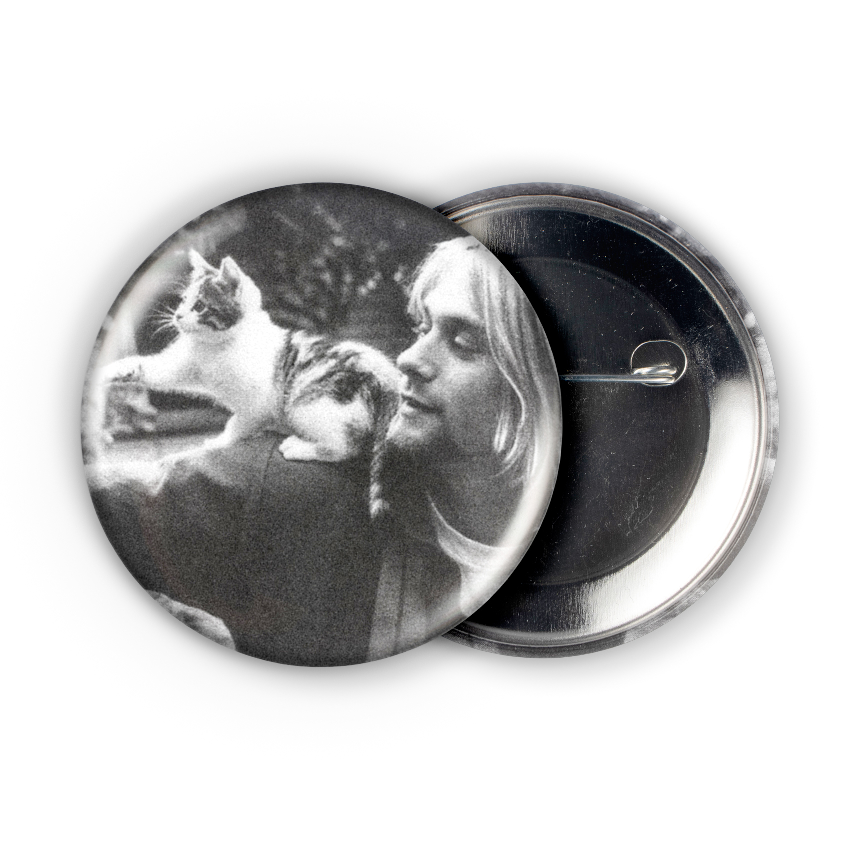 Kurt Cobain With A Kitten 2.25in Pin | 90s Grunge Icon Intimate Portrait