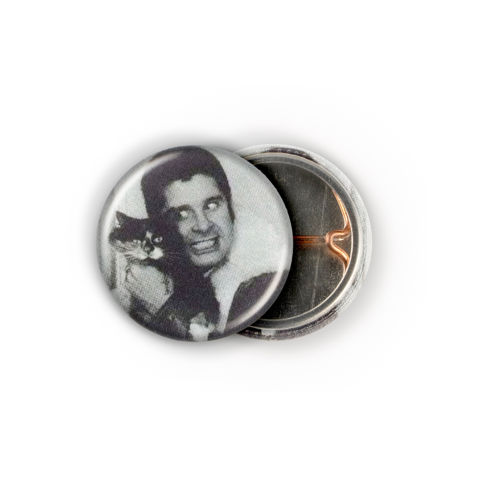 Ozzy Osbourne With a Kitten 1in Pin | 70s Rock Star with Cat