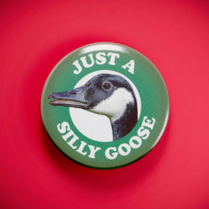 Just A Silly Goose 2.25in Pin | Whimsical Canada Goose Humor