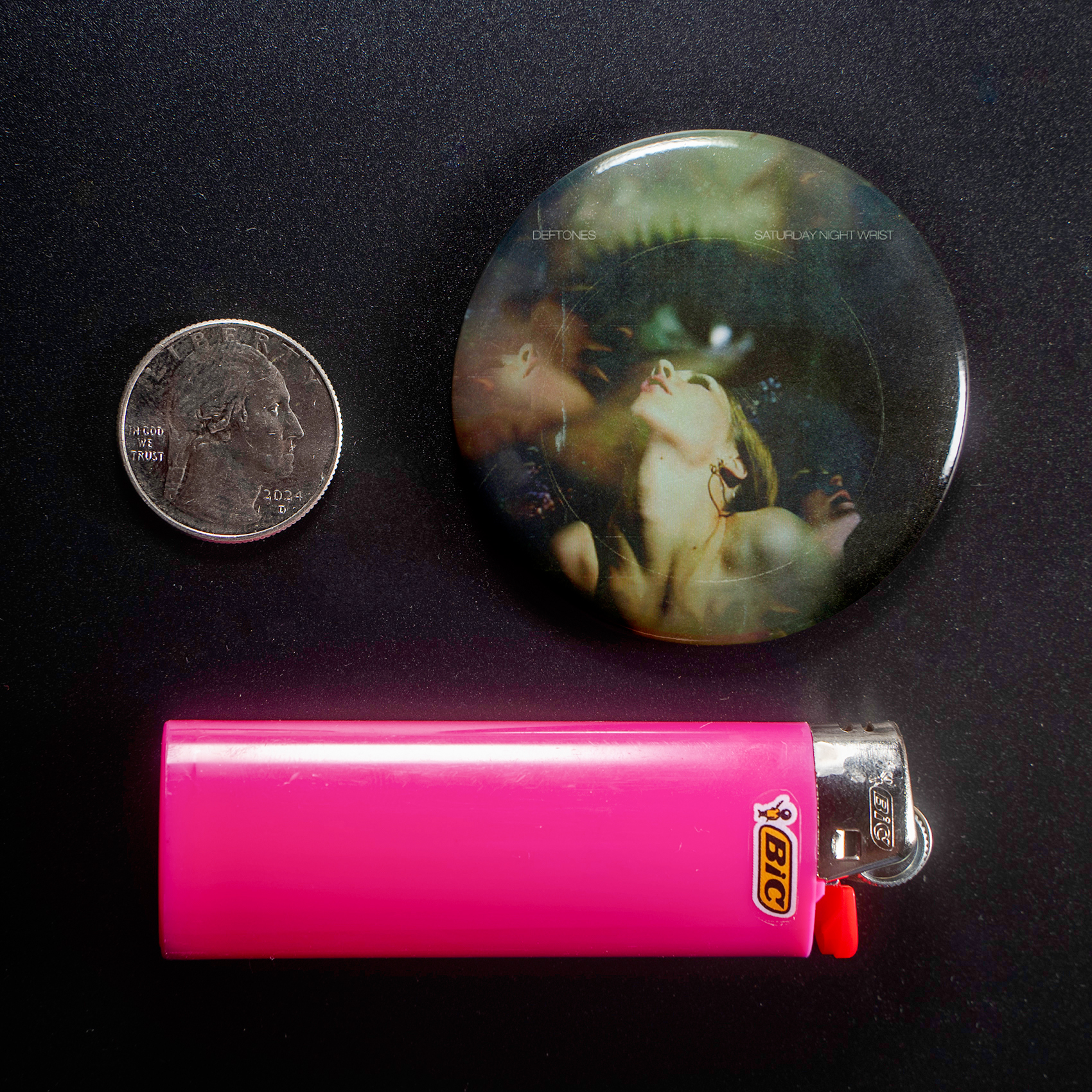 Submerged in darkness, a woman’s upturned face graces this 1.5" pinback button, echoing the haunting beauty of Deftones’ *Saturday Night Wrist*. Own a piece of alt-metal history and let this evocative pin be a subtle nod to your impeccable taste in 90s/2000s rock, a silent declaration of your love for Chino’s ethereal vocals and Carpenter’s crushing riffs.