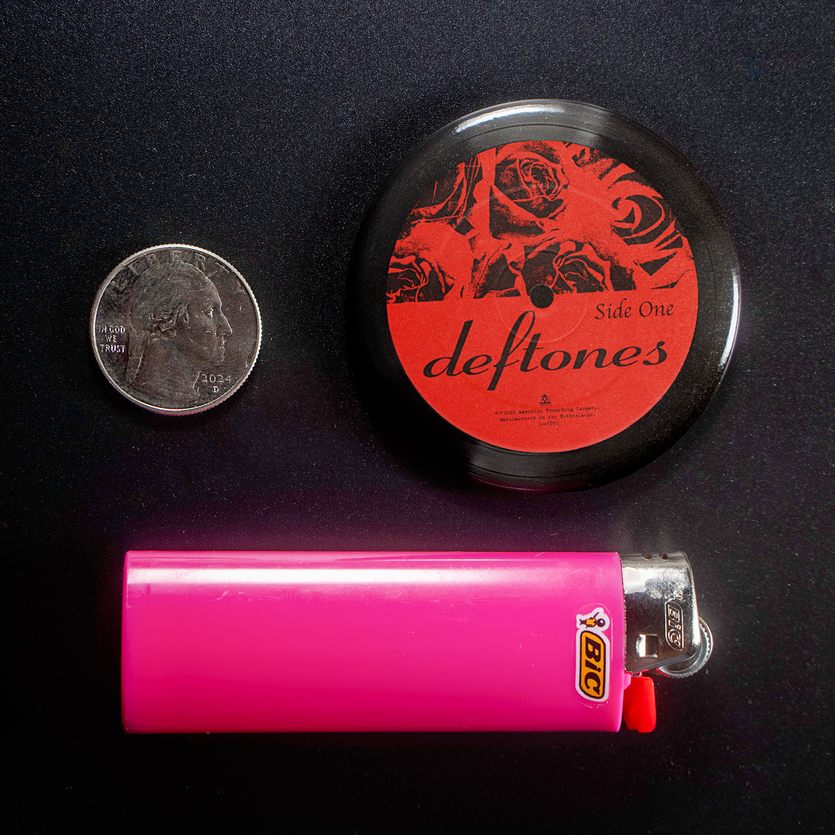 Crimson roses bloom darkly against the iconic Deftones self-titled album art on this 1.5" pinback button, a perfect miniature echo of the haunting beauty found on *Saturday Night Wrist*. If you’re a connoisseur of Chino’s melancholic melodies and the band’s evocative visuals, this pin is a must-have for your collection, a subtle nod to the introspective depths of late 90s/early 2000s nu metal.