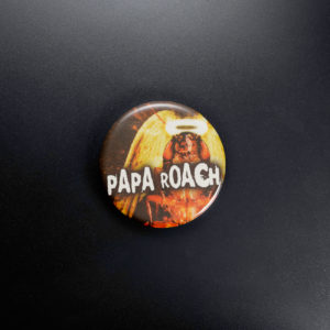 Witness the Roach Halo: a divine cockroach, wings spread wide, sanctified by a glowing nimbus and hovering above the iconic Papa Roach band name. This 1.5″ pinback button perfectly captures the band’s darkly humorous, rebellious spirit, a must-have for die-hard fans, collectors of edgy memorabilia, or anyone who appreciates a touch of ironic divinity with their nu-metal.