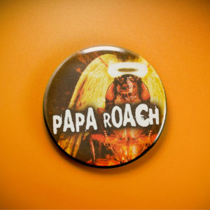 Witness the Roach Halo, a divine cockroach sporting golden wings and a radiant halo, emblazoned with the iconic PAPA ROACH moniker. This 2.25″ pinback button perfectly captures the band’s rebellious spirit and dark humor, a gritty, ironic emblem for long-time fans, collectors, concertgoers, and anyone drawn to the darkly divine energy of the late 90s/early 2000s rock scene.
