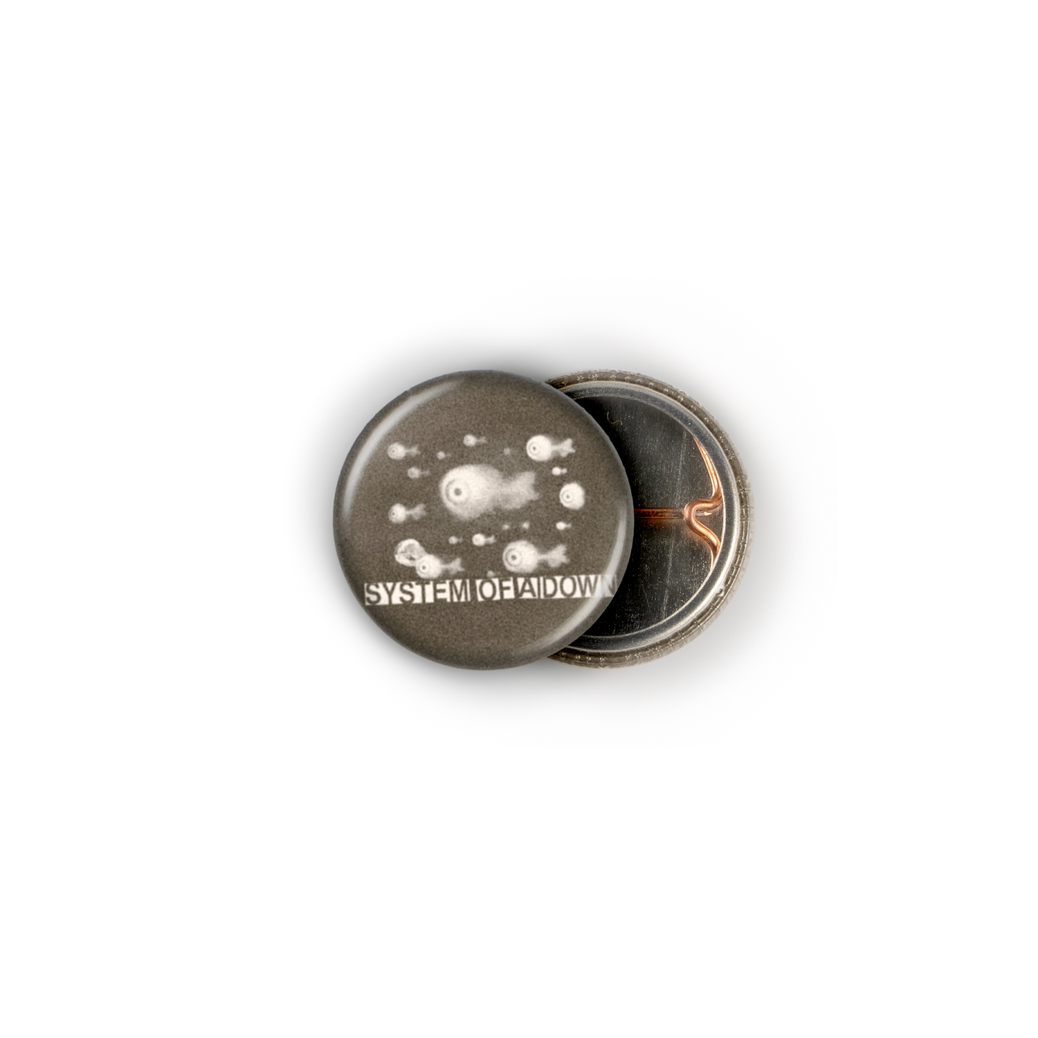 A school of surreal, fish-tailed eyeballs stares out from the void, swimming just above the unmistakable System Of A Down logo. This isn’t just a pin; it’s a potent dose of late-90s alternative energy and a wearable piece of the band’s uniquely bizarre visual identity. Slap this on your favorite jacket or backpack to instantly signal your place in the tribe that appreciates music with a message and otherworldly intrigue.