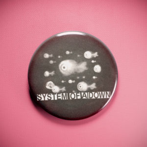 A surreal school of one-eyed oddities stares back from the void, swimming ominously above the unmistakable System Of A Down block lettering. Pin this tangible piece of their beautifully bizarre visual identity to your battle vest for an instant dose of late ’90s nostalgia, a perfect and unsettling glimpse into the otherworldly intrigue that defined an era of defiantly weird music.