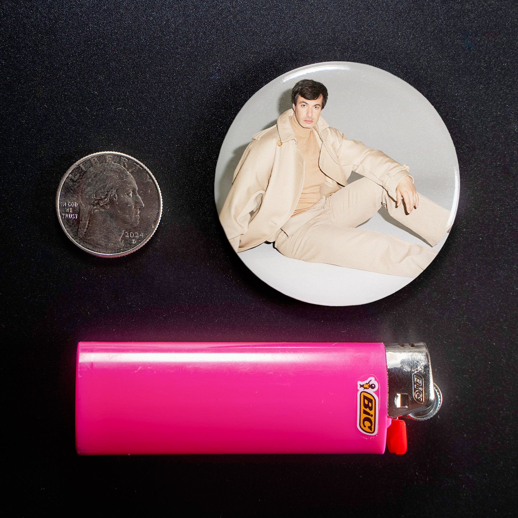 Nathan Fielder GQ Khaki 1.5in Pin | 2010s Surreal Comedy Portrait