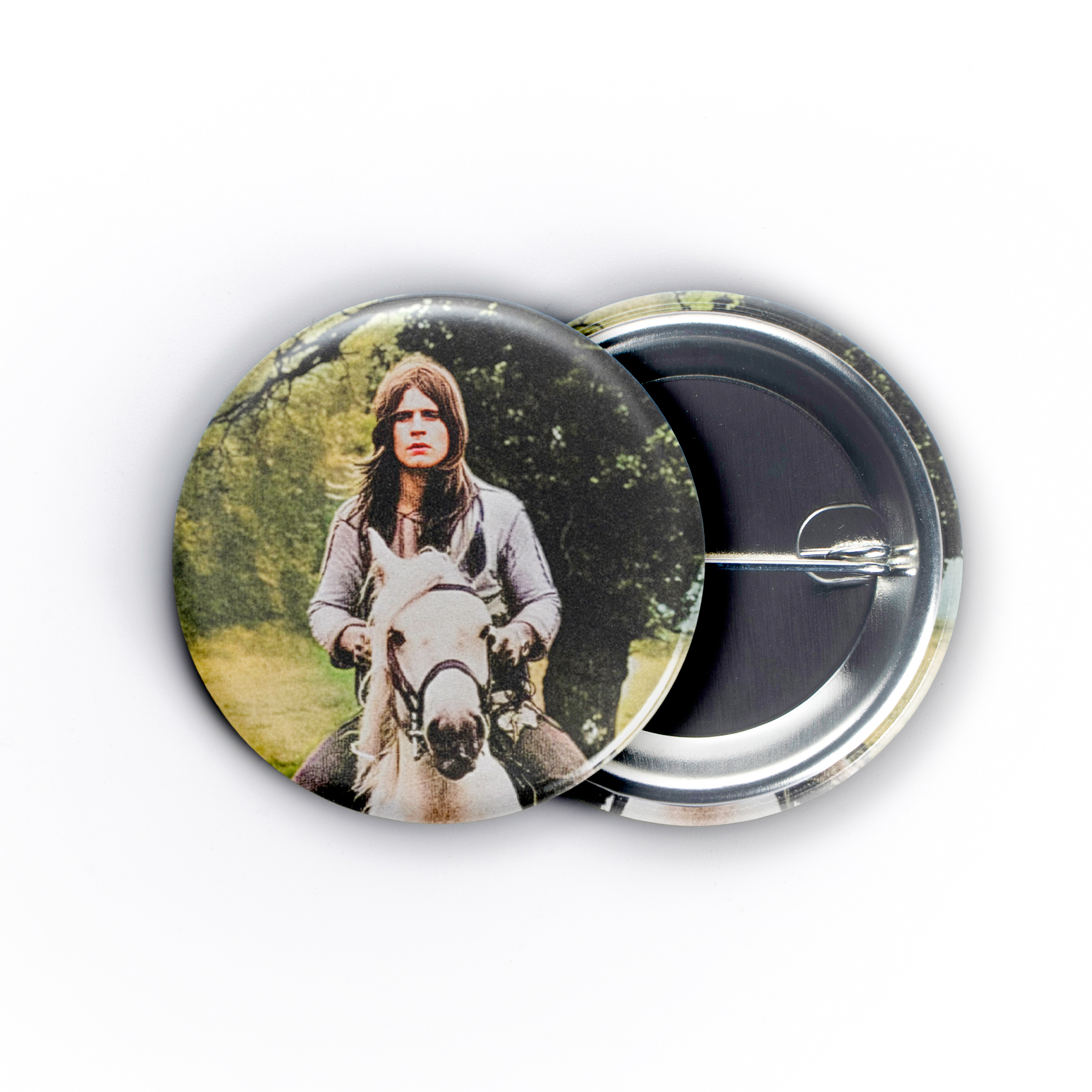 Ozzy Osbourne On A Horse 1.5in Pin | 70s Rock Pastoral Portrait