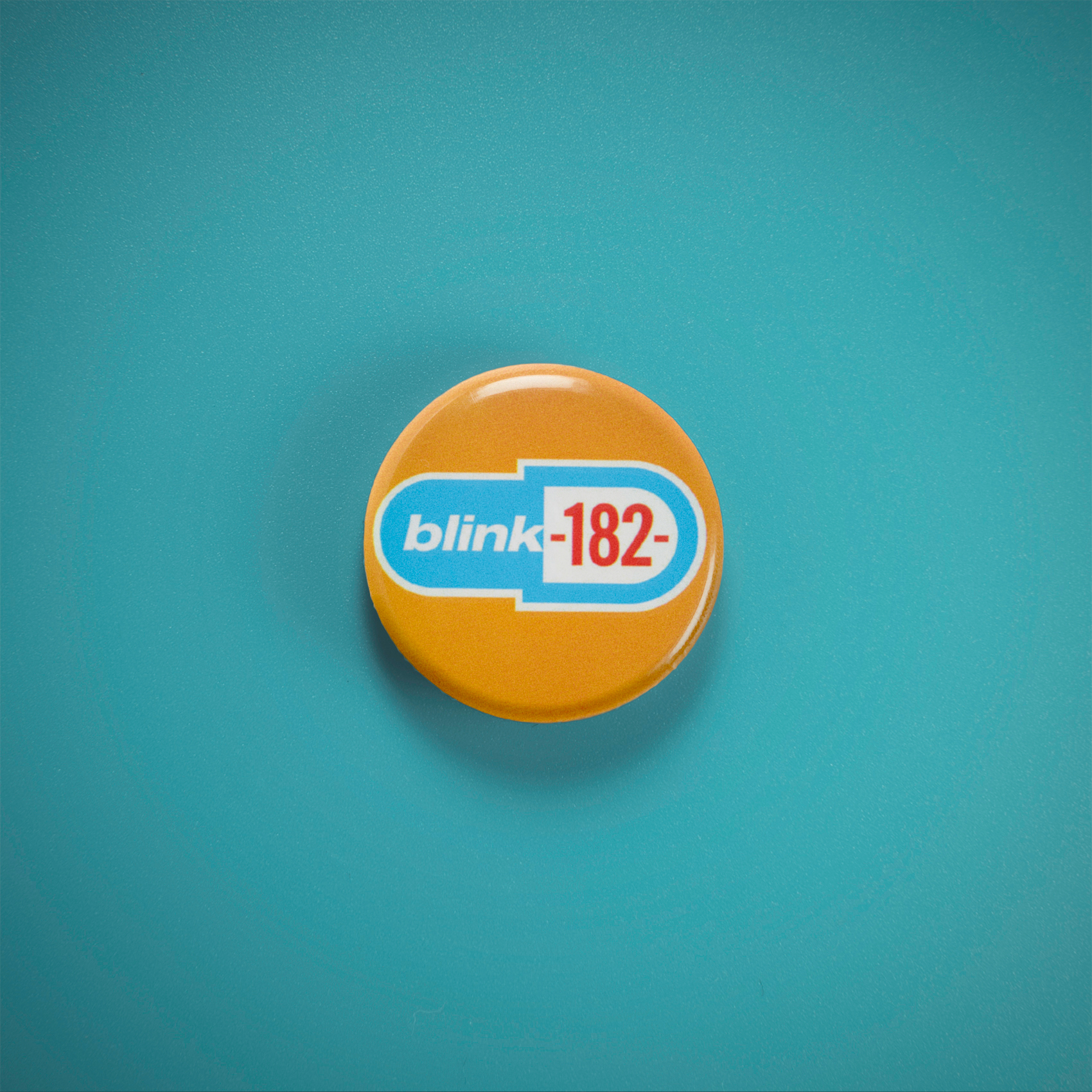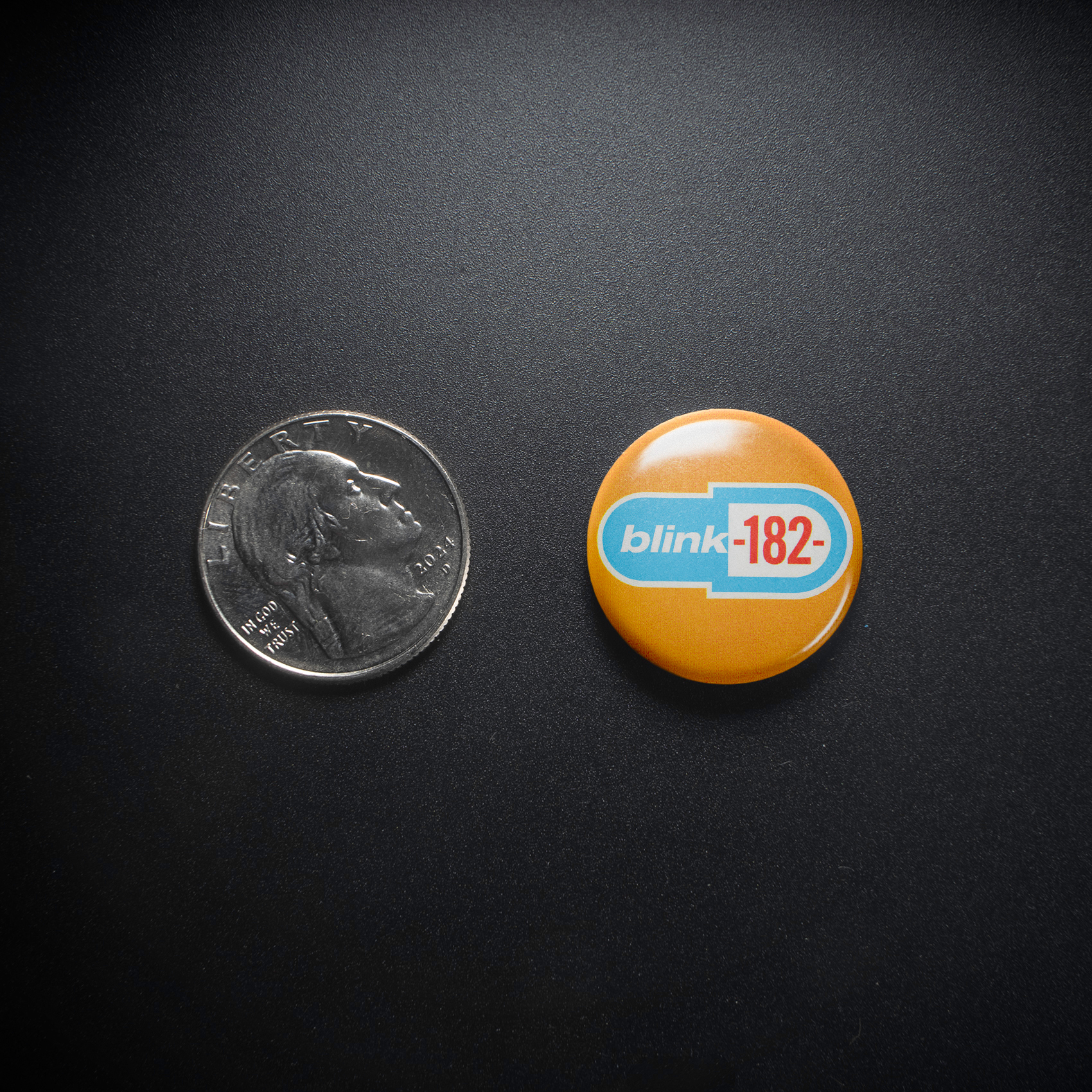 Bathed in a mustardy glow, the iconic Blink-182 logo from their Enema of the State era bursts forth from this 1" pinback button. A playful jab of nostalgia, this pin perfectly encapsulates that sweet spot between the goofy humor of Dude Ranch and the angsty anthems that defined a generation of misspent youth – slap this bad boy on your backpack, jacket, or whatever canvas screams "late 90s/early 2000s icon."