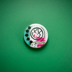 Witness the iconic Blink 182 smiley face, splashed with vibrant pink and teal and pierced by a flurry of black arrows, a perfect miniature of the Untitled album’s unforgettable cover. This 1″ pinback button isn’t just merch; it’s a portal back to the late 90s/early 2000s, a sugar-rush to the system capturing that raw, rebellious energy that defined a generation of pop-punk and emo kids.