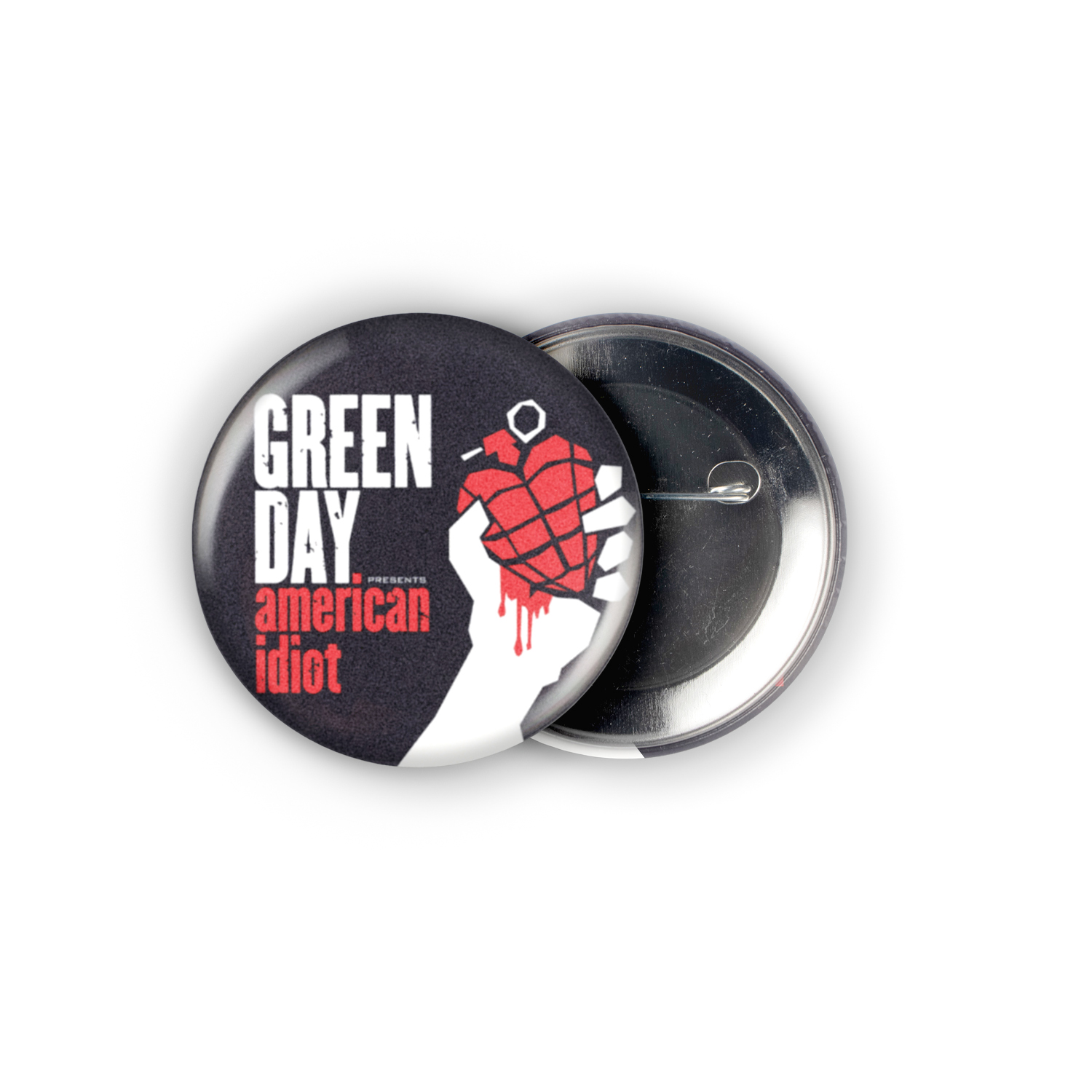 Behold the iconic grenade-heart, clutched tight on this 2.25″ pinback button, a miniature explosion of Green Day’s ‘American Idiot’ album art. This isn’t just a button; it’s a portal back to the raw, rebellious energy of the 2000s, a tangible piece of punk rock history perfect for any music enthusiast who remembers when anthems of disillusionment and outrage ruled the airwaves and fueled a generation’s fire.