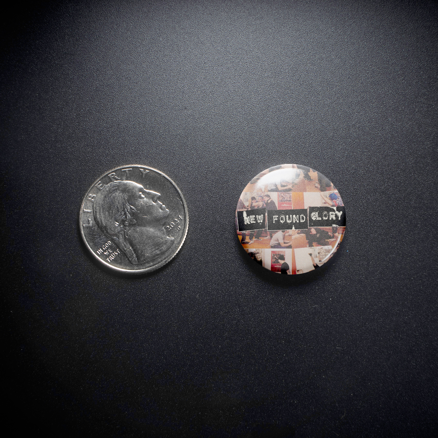 Behold this 1-inch pinback button, a rad collage of New Found Glory’s visages plastered beneath their iconic name—a snapshot of pure pop-punk power. For those who moshed to “My Friends Over You” and screamed along to “Head on Collision,” this pin isn’t just merch; it’s a portal back to the early 2000s, a tangible piece of that raw, rebellious energy that defined a generation of music lovers. Own a piece of pop-punk history and let the world know your Sticks and Stones devotion runs deep.